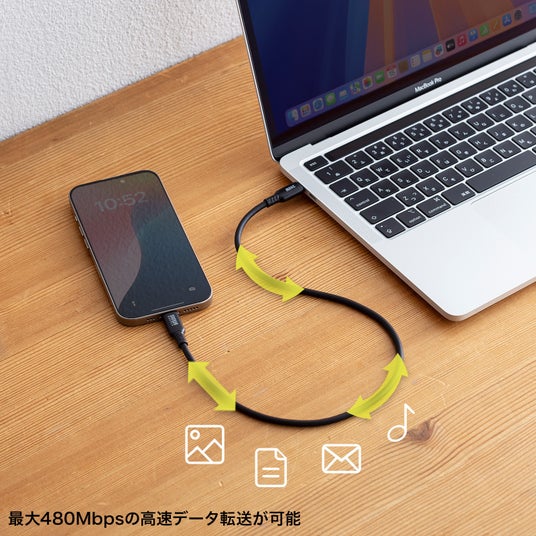 柔らかくて絡みにくいUSB2.0 Type-Cケーブル