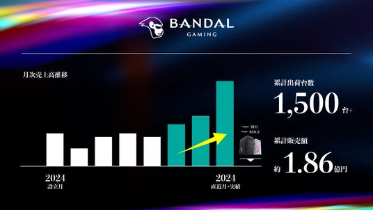 現在BANDALは、2024年の法人設立から僅か1年未満で累計で約1,500台以上のゲーミングPC・ワークステーションを出荷し、直近の出荷数や売上高においても毎月成長し続けております。