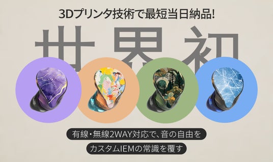 東京に本社を置き、「いい音をもっと身近に、もっと永く」という信念のもと、最先端の3Dプリント技術を活用して音響機器の新しい可能性を追求する会社です。3Dプリント技術を用いることで、従来では実現が難しかった精密かつ複雑な構造を可能にし、高性能・高音質・優れたフィット感を兼ね備えた製品を提供しています。私たちは最先端の技術を融合させ、これまでにない音楽体験をお届けします。