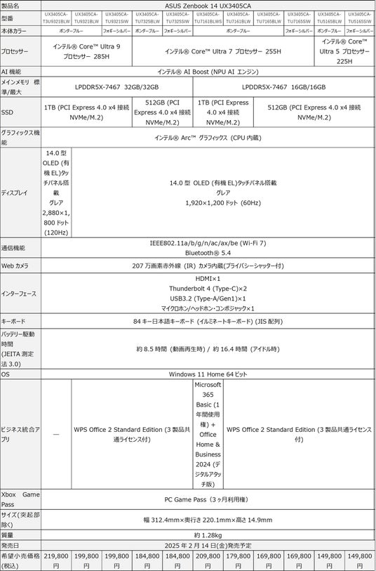 最新のインテル(R) Core(TM) Ultraプロセッサー(シリーズ2)およびAMD Ryzen(TM) AIプロセッサーを搭載した新しいASUS Zenbookシリーズを3製品15モデル発表