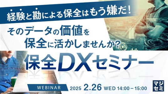 マジセミ株式会社は「経験と勘による保全はもう嫌だ!そのデータの価値を保全に活かしませんか?」というテーマのウェビナーを開催します。