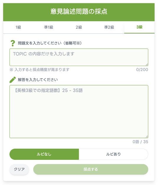今回は意見論述が対象ですが、Eメール問題・要約問題にもルビ付与を拡張し、あらゆるライティング練習で同じ利点を得られるよう順次アップデート予定。