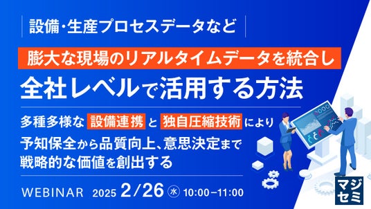 マジセミ株式会社は「【設備・生産プロセスデータなど】膨大な現場のリアルタイムデータを統合し全社レベルで活用する方法」というテーマのウェビナーを開催します。