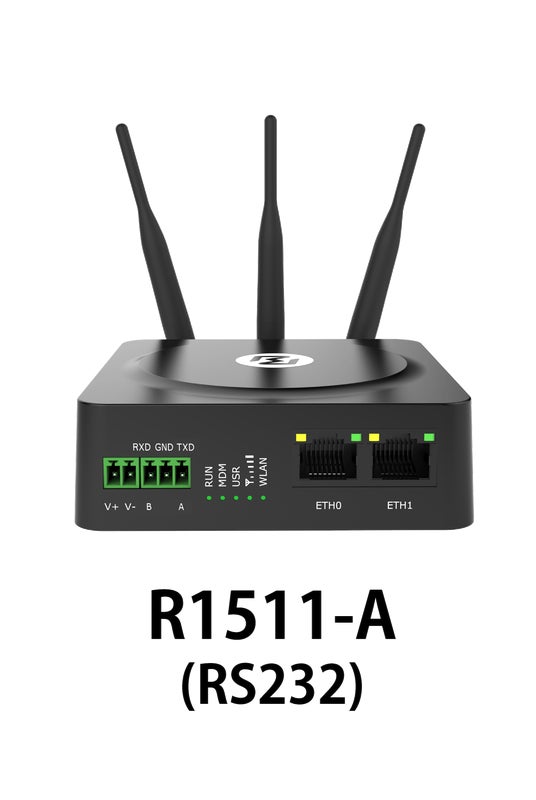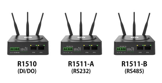 ロバステル社の産業向けセルラールータR151xシリーズには、R1510(DI/DO対応)、R1511-A(RS232対応)、R1511-B(RS485対応)の3タイプをラインナップしています。