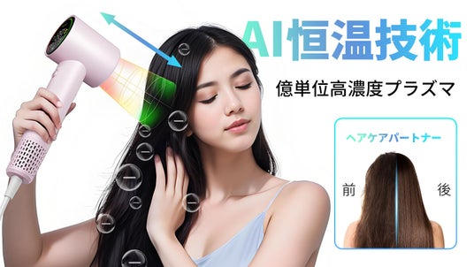 AI恒温高速ドライヤー、AI恒温と高速風量機能が両立し、55°恒温で髪をケアすることができます。また、インテリジェントセンサーを備え、リアルタイムで髪の温度を測定し、風力と温度を自動的に調節し、乾燥過程が効率的で確保することができます。ヘアドライの時間を短縮し、髪に当てる熱を減らして髪のダメージを抑えます。強力億単位のプラズマヘアケア技術で、静電気の心配はありません。