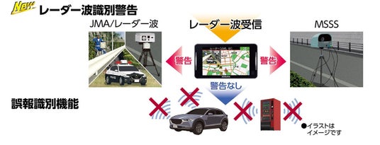 自動販売機や特定の車種から発生する電波と取締機の電波を識別し、誤報を低減しています※。