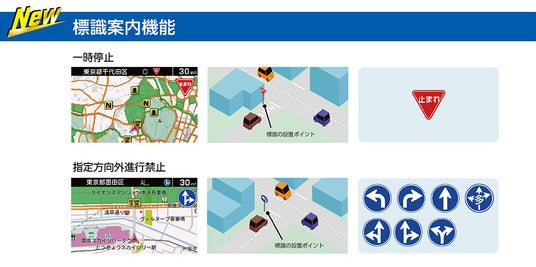 ※標識案内はポイントの登録、道路状況、GPSの測位状況など様々な要因により、お知らせしない場合があります。詳しくはホームページをご覧ください。