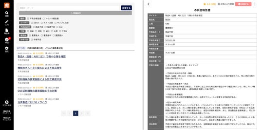 - 製品名や不具合発生工程、文章内のキーワードなど、複数の切り口で高速検索が可能。必要な情報を瞬時に見つけ出し、業務効率を向上させます。