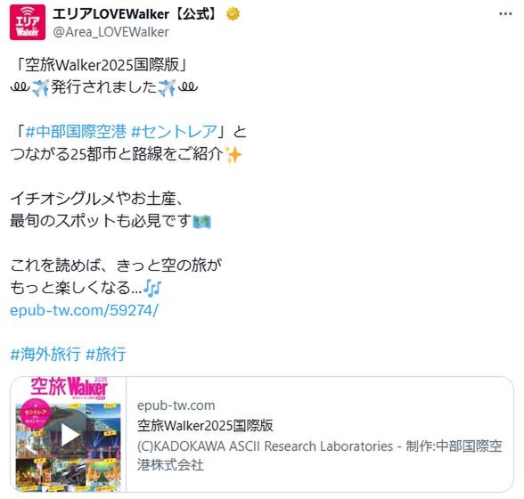 中部国際空港 セントレアが発行するフリーペーパー「空旅Walker2025国際版」(発行:角川アスキー総合研究所)が、電子書籍(EPUB)となって無償公開中です。