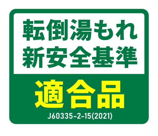 新安全基準とは、2026年6月以降に適用される、転倒時の湯漏れを50ミリリットル以下に抑える基準であり、より安全に使用できる設計が求められています。