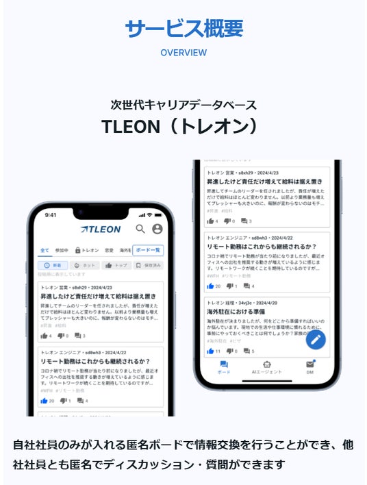 日本の会社員が匿名で繋がり社内外のキャリアを模索する、次世代キャリアDB「TLEON(トレオン)」β版事前登録開始のお知らせ