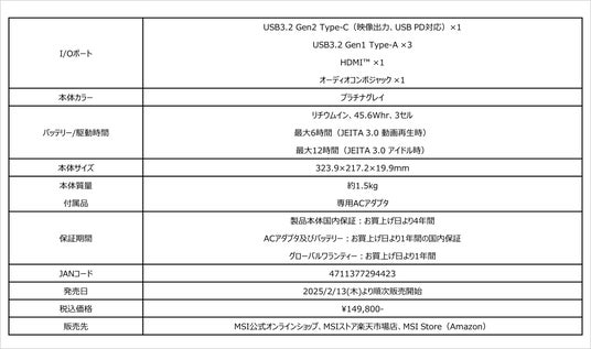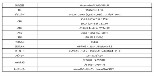 ・Modern 14 F13M 製品ページ:https://jp.msi.com/Business-Productivity/Modern-14-F13MX