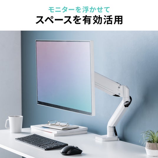 モニターアーム シングル ガス 32インチ 上下 左右 耐荷重12kgまで対応 ホワイト
