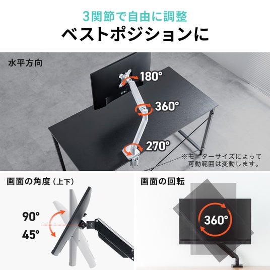 本製品は、クランプで挟み込んで固定できるモニターアームです。