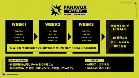 次世代のスターを発掘する「PARAVOX WEEKLY JAPAN TOURNAMENT」の開催が決定。WEEK1は2月8日(土)よりスタート!