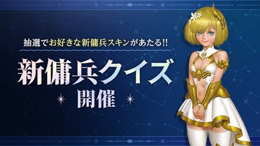 新傭兵「アン」&「アリー」の実装を記念し、新傭兵クイズを実施します。みごと全問正解をされたお客様の中から抽選で2名様に、新傭兵「アン」と「アリー」いずれかのお好きな傭兵スキンをプレゼントいたします。