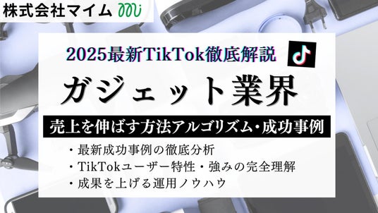 株式会社マイム(本社:東京都品川区、代表取締役社長:古川 湧一、以下「当社」)は、ガジェット業界の皆様を対象に「2025年版TikTokトレンドレポート」を公開いたしました。本レポートは、TikTokを活用した最先端のプロモーション事例や成功パターン、そして結果に直結する戦略的な運用ノウハウを一冊に集約。