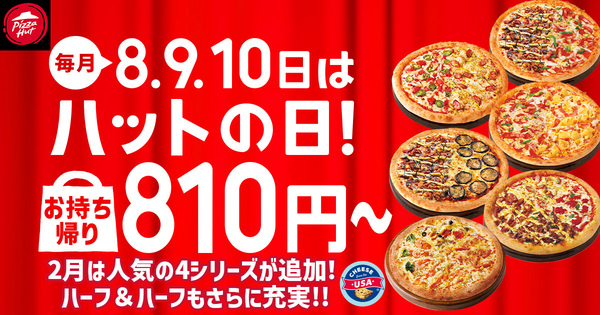 「ハットの日」は毎月8日・9日・10日の3日間限定で、持ち帰り対象のピザを810円から販売するキャンペーンです。