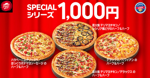 また、2種類のピザを組み合わせた「ハーフ&ハーフ」も1000円になり、最大1830円おトクに購入できます。