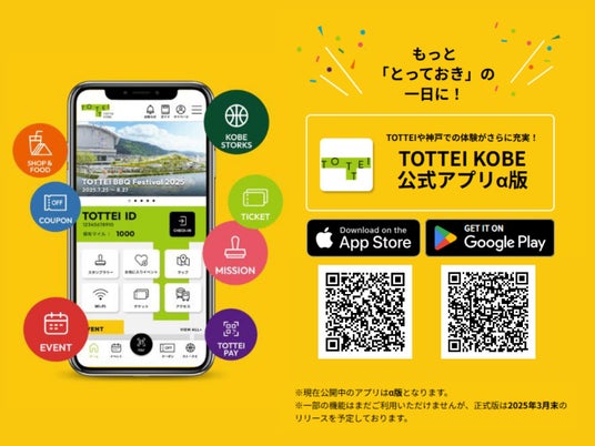 4月4日(金)~5月3日(土)までのオープニング月間「新たな船出を祝う 30 Days~Turning point 30~」に先駆け、TOTTEIや神戸での体験をさらに充実させる「TOTTEI KOBE(トッテイコウベ)公式アプリ」α版(*1)を配信開始しましたのでお知らせします。