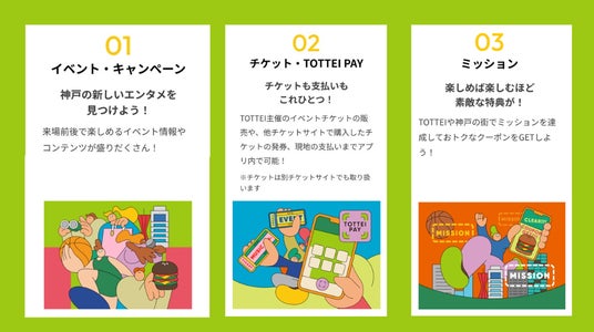 本アプリでは、「TOTTEIや神戸での体験がさらに充実するアプリ」をコンセプトに、開業に向けてさまざまな機能を公開していきます。