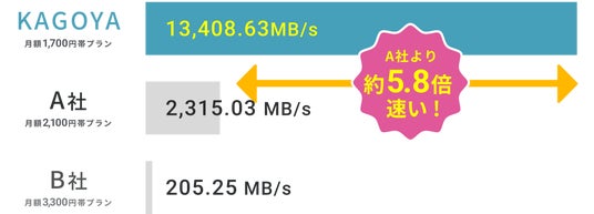 アプリケーション開発やサイト配信には、データベースからの読み込み速度が大きく影響します。国内高評価VPSサービスの同一スペックで、1秒あたりの読み込み性能を比較した結果、新仮想化基盤を採用したKAGOYA CLOUD VPS は、優れた結果になっています。