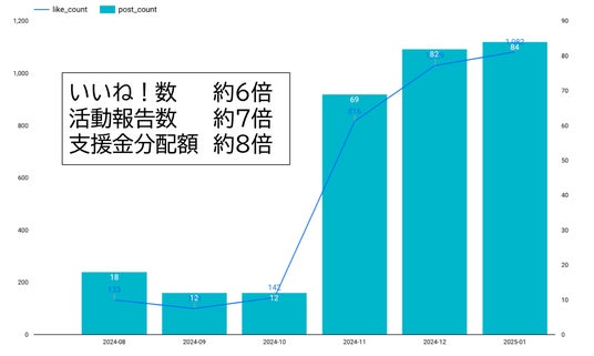 実証事業が開始された11月から大幅に活動報告数、いいね!数が増加