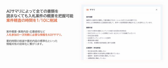 今までは入札情報を収集後、さらに自社に合致している案件を精査するのに膨大な時間が必要でしたが、事前のAIによる精査が行われるため大幅に情報収集の時間が削減されます。
