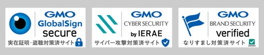 GMOインターネットグループの、GMOグローバルサイン、GMOサイバーセキュリティ byイエラエ、GMOブランドセキュリティでは、それぞれ、「実在証明・盗聴対策済サイト」「サイバー攻撃対策済サイト」「なりすまし対策済サイト」を証明する「セキュリティ対策済・サイトシール」を提供しています。