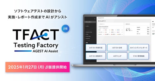 先端品質テクノロジーを活用してソフトウェアの品質・安全性向上を支援する株式会社AGEST(本社: 東京都文京区、代表取締役 社長執行役員 CEO: 二宮 康真、以下、「AGEST」)は、AI機能を標準搭載した独自のテスト管理ツール「TFACT」と、エヌ・ティ・ティ レゾナント・テクノロジー株式会社(本社:東京都千代田区、代表取締役 社長:三澤 淳志、以下、「NTTレゾナントテクノロジー」)が提供しているリモートで実機検証可能なクラウドサービス「Remote TestKit」を連携させたテスト自動化の共同検証を開始するとともにプロジェクトでのTFACT活用を開始することをお知らせいたします。