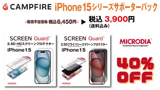 【2/1~3/20限定】MICRODIAのiPhone 15向けスクリーンプロテクターがCAMPFIREで驚きの40%OFF!