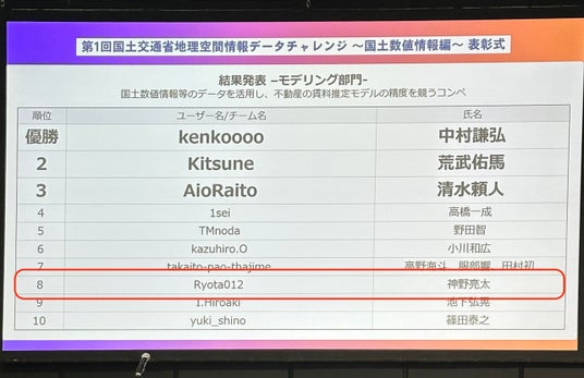 エステートテクノロジーズのデータサイエンティストが、国土交通省主催のデータ分析コンペティションにて全国1,532名の中から8位入賞を受賞