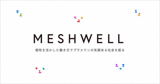 MESHWELLは素材のメッシュ地のように交わらせ編み込む(MESH)という意味と、より良くする(WELL)という意味を掛け合わせた造語です。会社名とロゴには課題がある企業と、それを解決する人たちを結び付けるサービスを立ち上げたいといった思いが込められています。