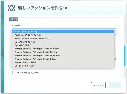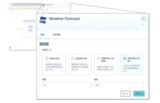 「Weather Forcast アクション」、および生成AIモデルの利用には、クレジットを消費します。