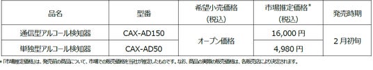 株式会社JVCケンウッドは、KENWOODブランドより、運転者を抱える事業者向けアルコール検知器の新モデルとして、通信型アルコール検知器「CAX-AD150」、および単独型アルコール検知器「CAX-AD50」の計2モデルを2月初旬より発売します。