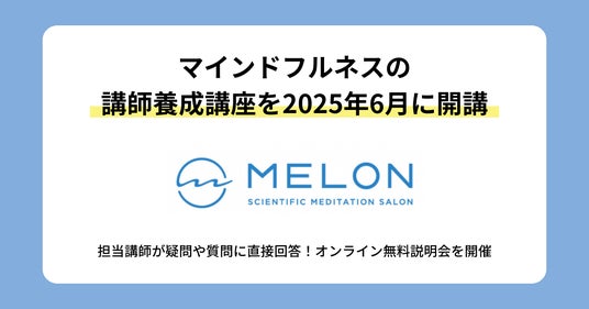 組織と個人の力を最大化する、心と感情のマネジメントを提供する株式会社Melon(本社:東京都港区、代表取締役CEO:橋本大佑、以下MELON)は、2025年6月より講師養成講座を開講します。本講座を修了すると、「一般社団法人マインドフルネス瞑想協会認定講師」の資格を取得できます。
