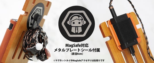 バックプレートの背面にメタルプレートを貼り付けることで、MagSafeアクセサリをそのまま張り付けたり、マグネットタイでイヤホンのケーブルを固定することで、背面のケーブルをすっきりまとめることなどが可能になっています。