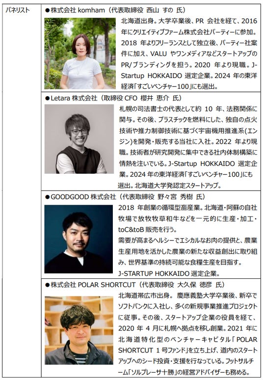 ■トークセッション「北海道のスタートアップエコシステムの現在地」登壇者