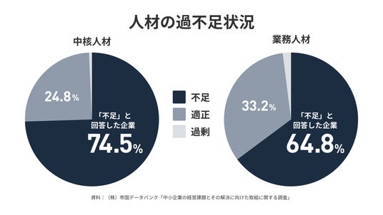 現在、日本企業の多くは、人材不足が深刻な課題となっています。中小企業庁の2024年版「中小企業白書」によれば、7割超の中小企業が「人手不足」を経営課題として挙げており、特に営業や販売部門での人材確保が困難な状況にあるとされています。