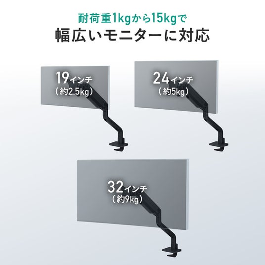 モニターアーム シングルアーム 薄型クランプ 32インチ対応 スプリング式 耐荷重1~15kg