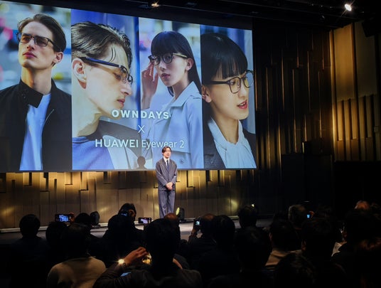 発表会では、ゲスト登壇したOWNDAYS株式会社 取締役/経営企画本部 本部長 明石 拡士氏より軽量で快適な装着感を実現したオーディオグラス『OWNDAYS×HUAWEI Eyewear 2』から、新デザインが発表されました。