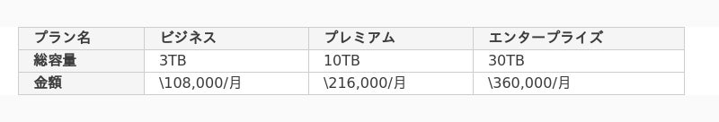 ※1ビジネスプランのストレージ構成は3TB+ウォームストレージ1TB となります