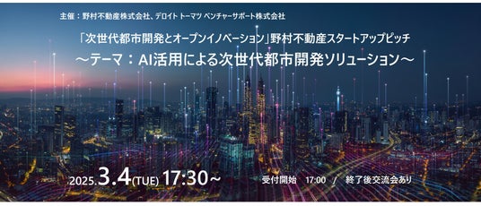 当社取締役の田中和哉が、野村不動産株式会社ならびにデロイト トーマツ ベンチャーサポート株式会社が主催で3月4日に開催されるイベント「次世代都市開発とオープンイノベーション」野村不動産スタートアップピッチ ~テーマ:AI活用による次世代都市開発ソリューション~に登壇します。