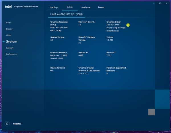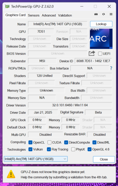 Arc 140Tのアーキテクチャーは、Xe-LPG(開発コードネーム:Alchemist)を改良した「Xe-LPG+」。Xe-Coreは8基で、Xe-LPGにはなかった「XMX(Xe Matrix Extensions)」を搭載し、AIの推論性能が期待できます。