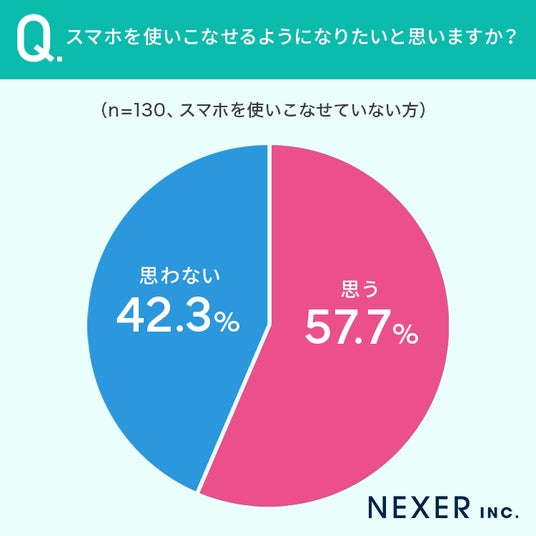 ■57.7%がスマホを使いこなせるようになりたいと「思う」
