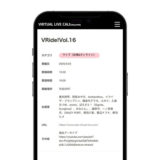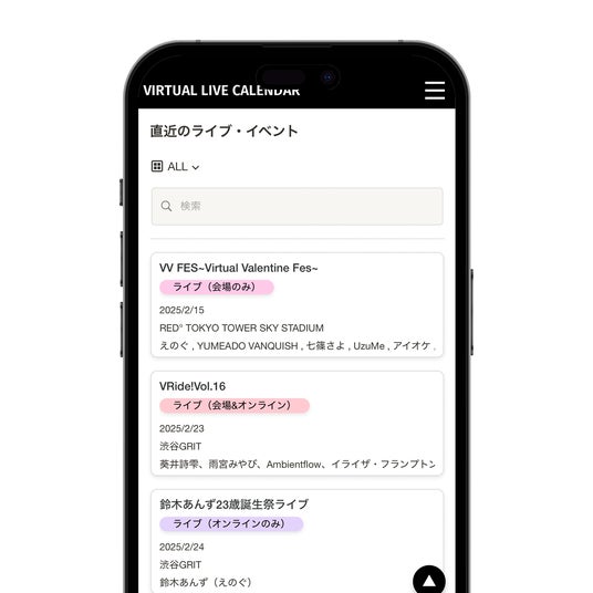 情報を追いかけたいと思っても、XのポストやYouTubeの配信を個人がチェックできる量にも限界がありますし、さまざまな形態で活動するバーチャルアーティスト様のライブやイベント情報を個人・法人問わずに網羅することは難しく、そういった情報サイトも2025年2月現在、存在していません。