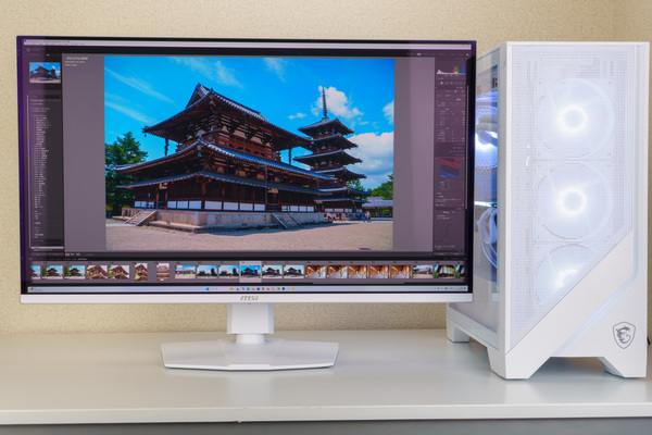 実際にAdobe「Lightroom Classic CC」で写真の現像作業をしたが、ハーフグレア(反射防止コーティング)の効果もあり、非常に発色がよく調整しやすい。肌色に合わせたホワイトバランス調整も的確にできた。また、31.5インチで4K解像度だと、Windowsのスケール設定で100%表示もぎりいける。そうすると、作業領域も非常に広くなり、作業効率もぐっとアップする。