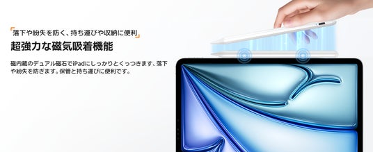JAMJAKEのiPad用タッチペンは、二重強力磁気吸着機構を搭載。これにより、ペンを使用しないときでも、しっかりと固定され、紛失の心配がありません。ノートを取る時やスケッチする際に、ペンの置き忘れや落下を心配せず、安心して使用できます。