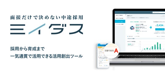 『ミイダス』は、世界初※の採用・転職におけるミスマッチを減らしながら入社後の活躍をサポートする採用・転職サービスです。