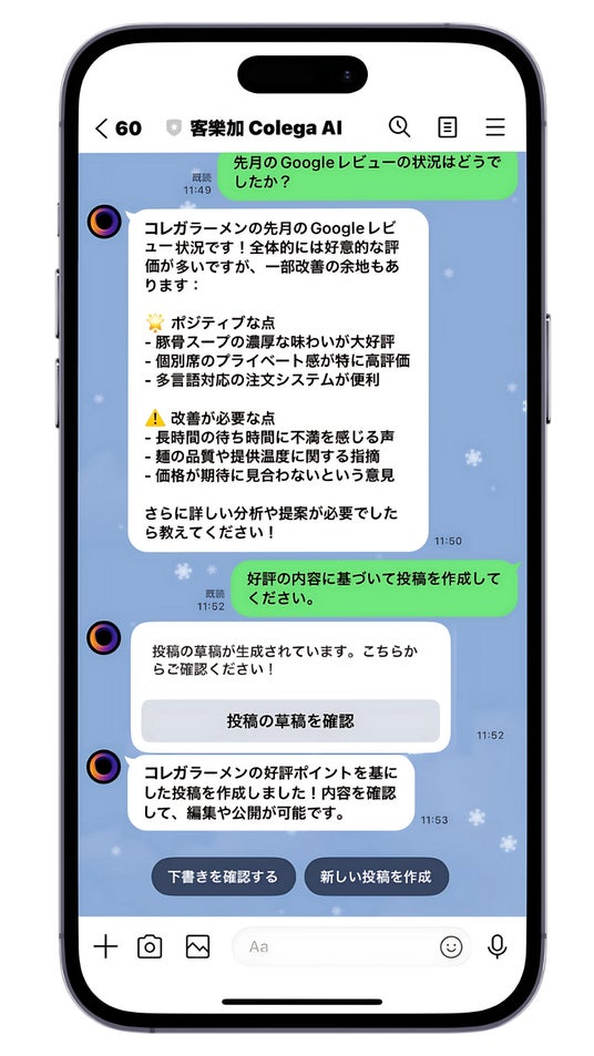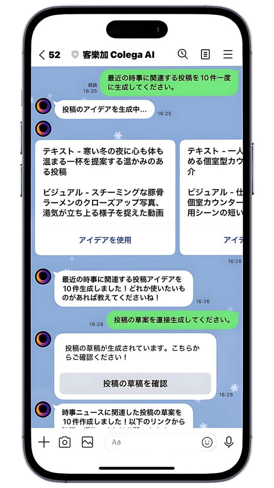 独自のAIで飲食店向けのSNSコンテンツの作成、管理をLINEで簡単に実施 -「Colega AI」日本市場で本格的にサービスを開始